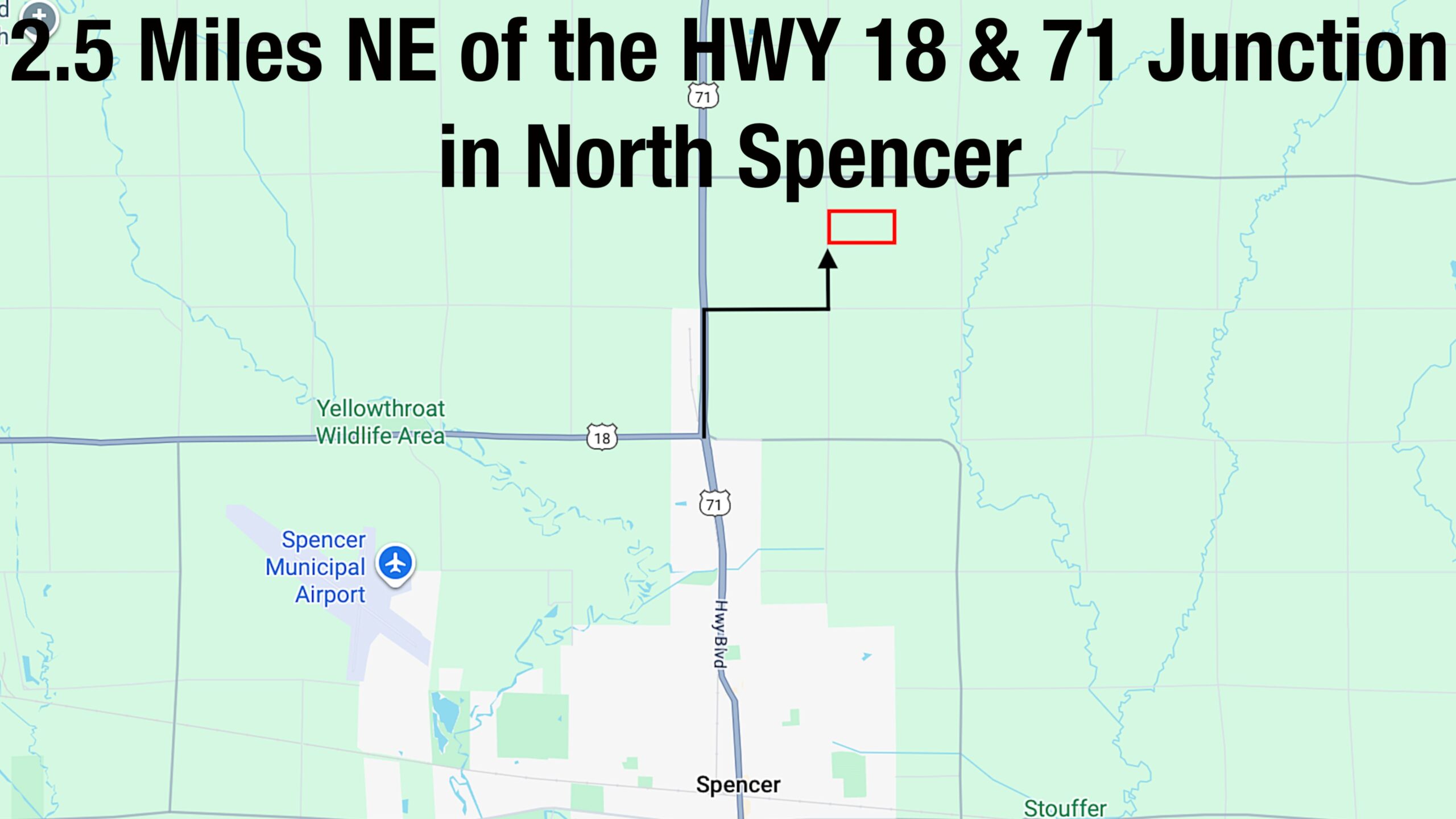 2 miles north of Spencer, Iowa on Highway 71, 1 mile east on 310th Street, and 1/2 mile north on 230th Avenue.